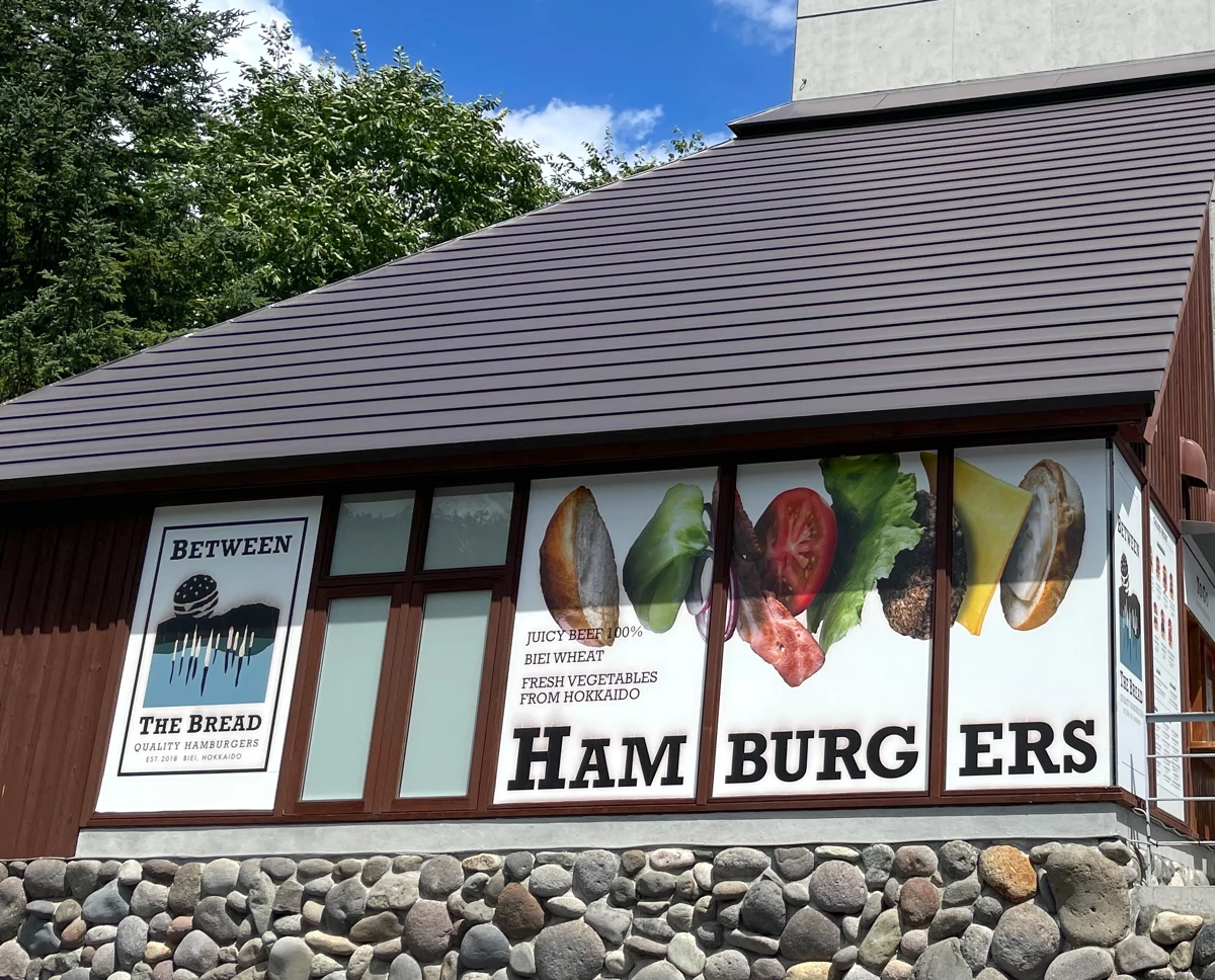 美瑛は白金エリアの森の中にある雰囲気の良い道の道で、広い駐車場とテイクアウト専門の露店が数軒、それから道の駅のお土産コーナーと名物のハンバーガーショップ「BETWEEN THE BREAD」があり、ここでハンバーガーを食すことがライダーの義務となっております。