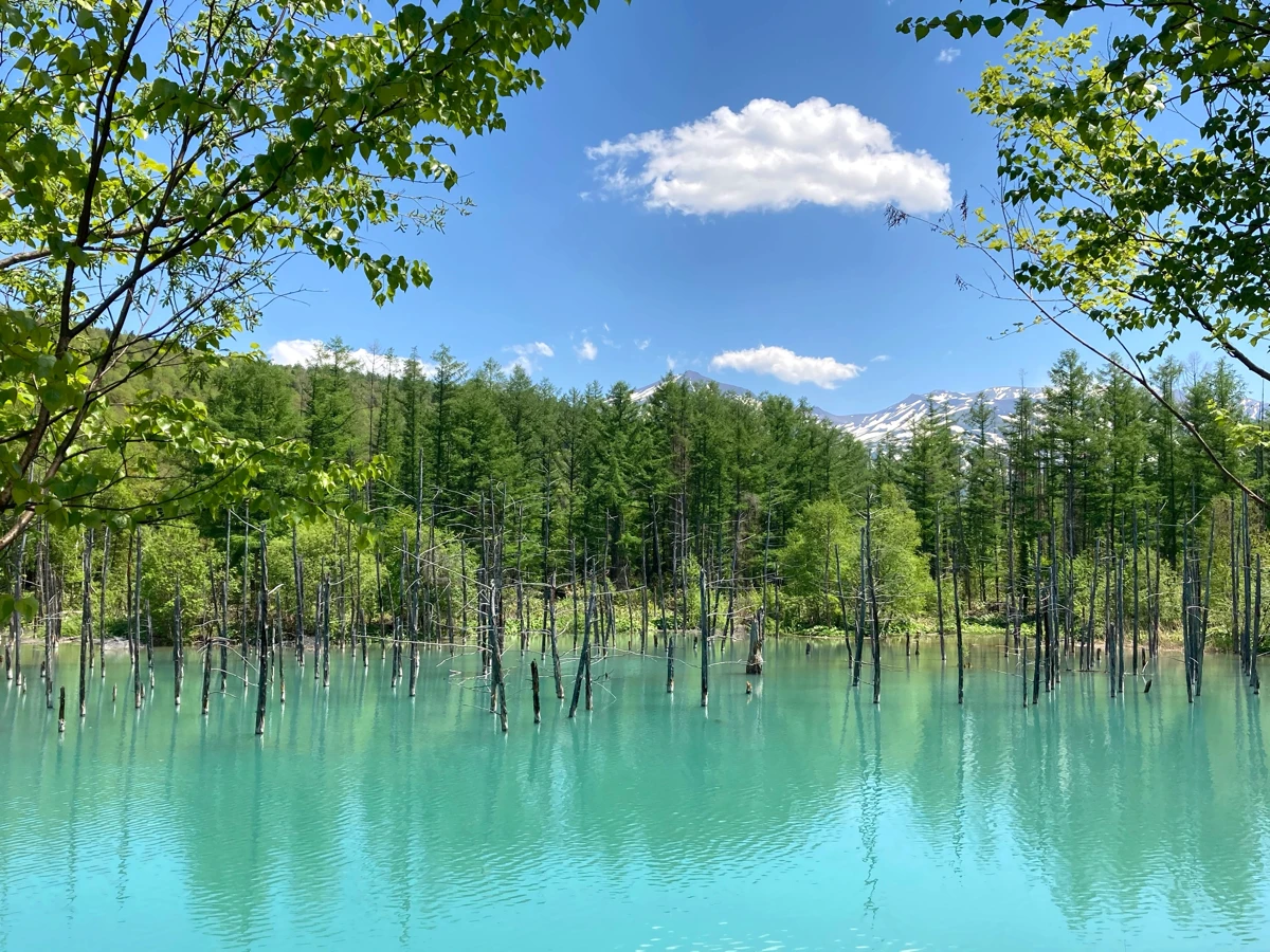 そうです!あの神様仏様Apple製品様の壁紙として採用されるや否や、その幻想的な美しさが話題を呼び、一躍有名となったあの青い池があるんです(大切なことなので2回言いました)