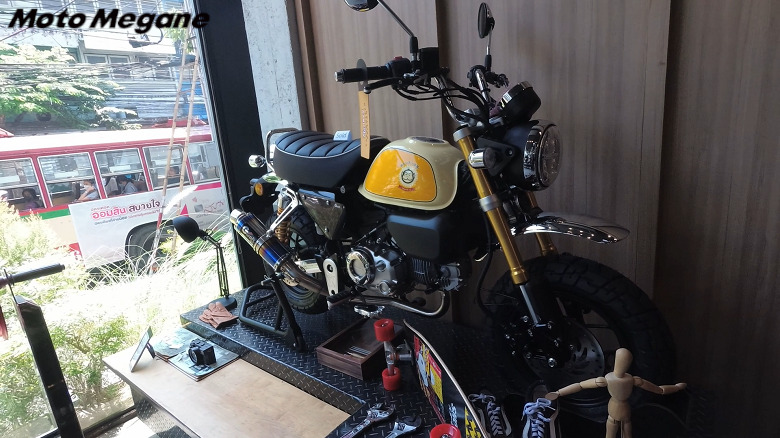 カブハウスはタイ生産のホンダ小型マニュアルシフト車(日本の原付二種に相当)がテーマのコンセプトカフェ。ノーマル車両はもちろんチューニングパーツを組み込んだカスタム車両が落ち着いた雰囲気で展示されています。