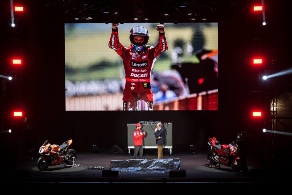 イベントに先立って開催された記者会見では、MotoGPチャンピオンシップの最後の3つのレースの最も重要でエキサイティングな瞬間を集めたドキュメンタリー・ショートフィルム、「Nuvola Rossa: Bagnaia & Ducati’s Perfect Comb1nation」も上映されました。この20分間のドキュメンタリー映像は、 ドゥカティ公式YouTubeチャンネルおよびDucati.comで12月16日に公開されました。