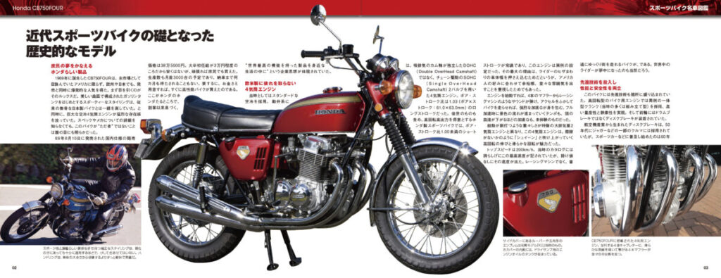 CB750FOURを生み出したホンダをメインに、ヤマハ、スズキ、カワサキをはじめとした、他メーカーの過去のモデルの中から、多くの人々の記憶に残る「名車」を毎号1台ずつ紹介。現存する実物の車両を細部まで撮影、多くの写真と共に名車を徹底解説。歴史的価値はもちろん、誕生した背景などにも数々のドラマが隠されている名車の魅力に迫る。