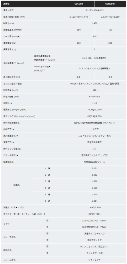 • CBR650R、CB650Rともに、平成32年(令和2年)排出ガス規制に適合