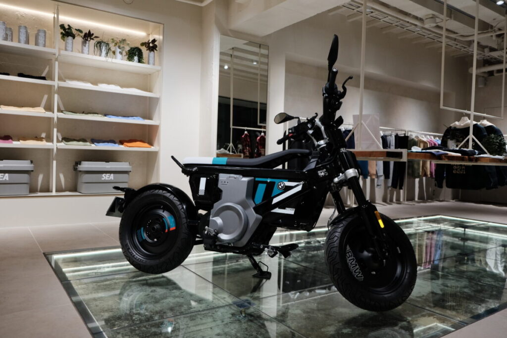 BMW Motorradは、東京発アパレルブランド「WIND AND SEA」の店舗内に、パルクールをコンセプトにした新型電動バイクCE 02の展示を開始した。