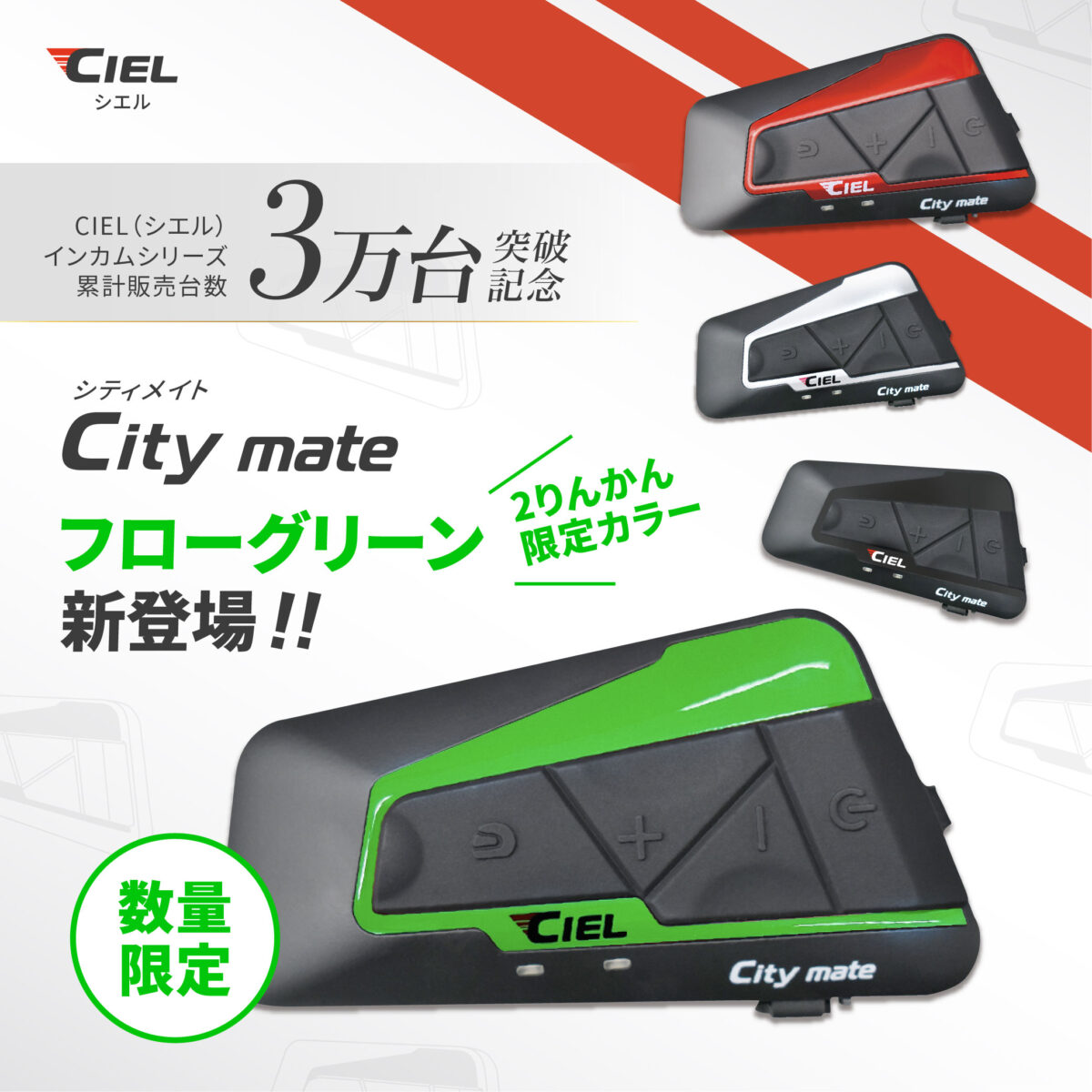 CIEL(シエル)総発売元の株式会社 LINKS(京都市中京区: 代表取締役 澤田大祐)は CIEL (シエル)オートバイ用インカム シリーズ累計販売台数 30,000 台突破を記念して、シティメイト 新色フローグリーンを 2りんかん限定・数量限定で2023 年 8 月 25 日より新発売致します。