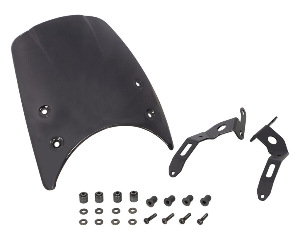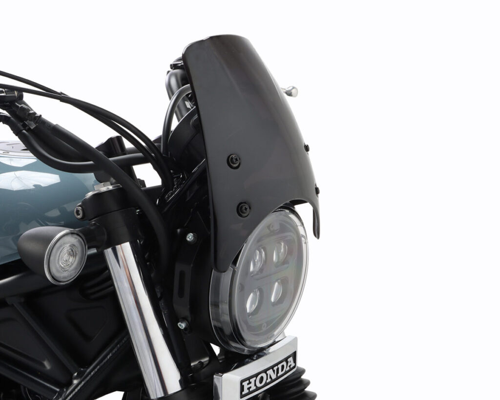 フロント周りを引き締めるポリカーボネイト製の小型バイザー。