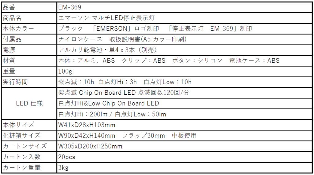 名称 :EM-369 エマーソン マルチLED停止表示灯
