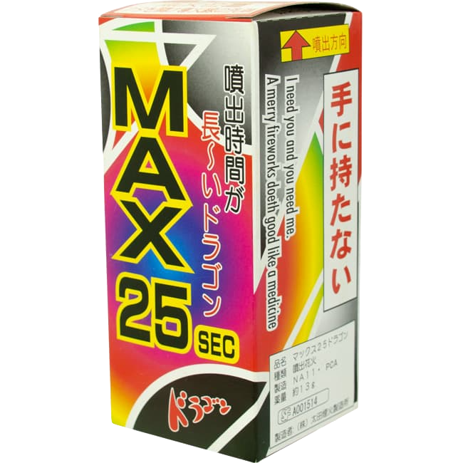 しかもドラゴン花火 MAX25なるものがあるのを初めて知ったよ……。