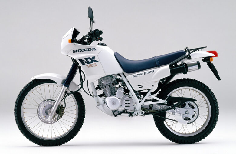 「NX125」のネーミングは、1986年から参戦最終年の1989年まで無敗を誇り「砂漠の女王」と呼ばれた「NXR750」から由来しています。AX-1の輸出車名もNX250であることから、海外でラリーのイメージを押し出そうとしていたのでしょうね。