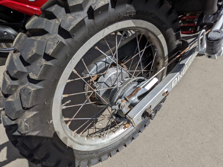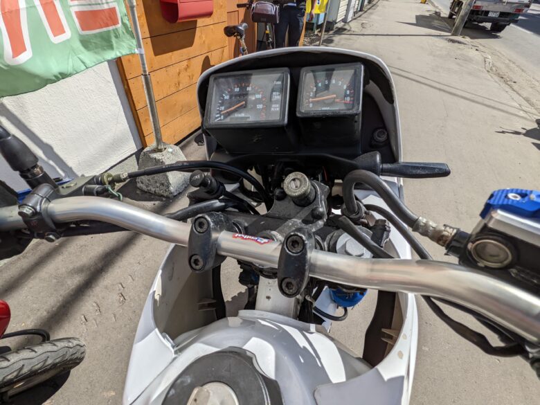 「ロードはダメダメでもダートは行けるんじゃね?」と期待して林道に乗り込むと、たちまち後悔することに。街乗りに寄せたサスペションのセッティングのため、深い砂利のコントロールが難しい。フロントフェンダーが低く、泥道を走ればタイヤとの隙間に詰まります。残念ながら「ダートバイクの真似をしたオンロードバイク」と割り切るしかなさそうです。