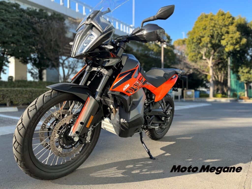 並列2気筒で今、流行りの270°クランクでは無い、こだわりのKTMの個性が走りに現れる。軽快でよく回るエンジン。それでいてV型のようなじわっとくるトルク感覚はパワーの伝達がライダーに伝わりやすいのでアクセルワークをコントロールしやすく楽しい。中速と高速はもうじゃじゃ馬に変貌するのも特徴。
