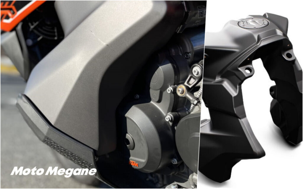 給油口こそ上にあるが20Lのガソリンが左右に振り分けられて下のタンクに入る。それによって重心が下がりマシン全体の低重心に大きく寄与している。これが、走行時の安定性につながってすこぶる走りやすい。BMWのボクサーエンジン、とまではいかないがそれに匹敵する安定感を生み出している。