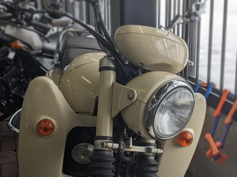 アイボリーのカラーリングと陶器のような質感は、バイクっぽくないですよね。