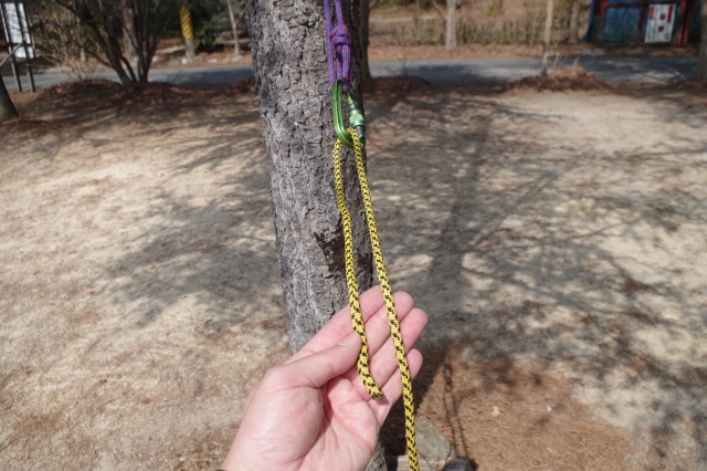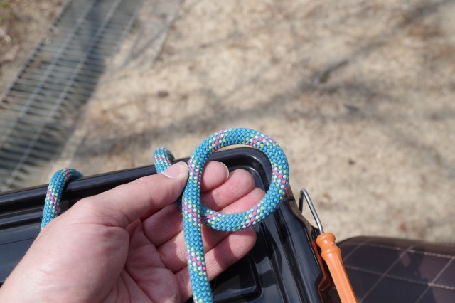 そしてその輪っかに通したΩ型の部分にロープの末端を通してやります。