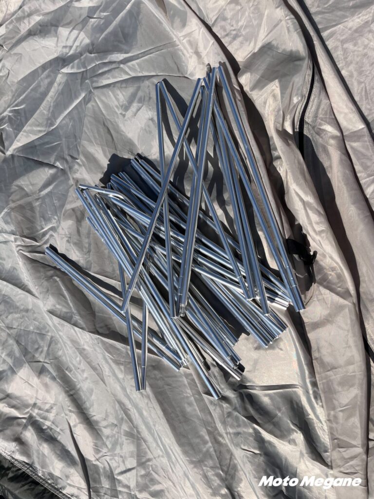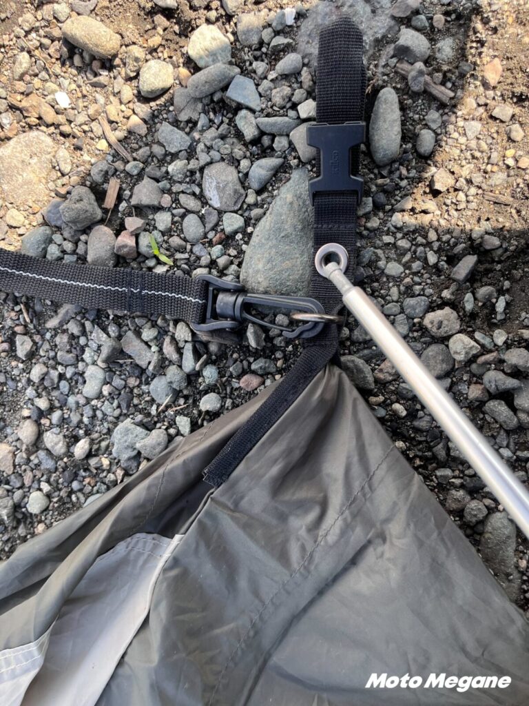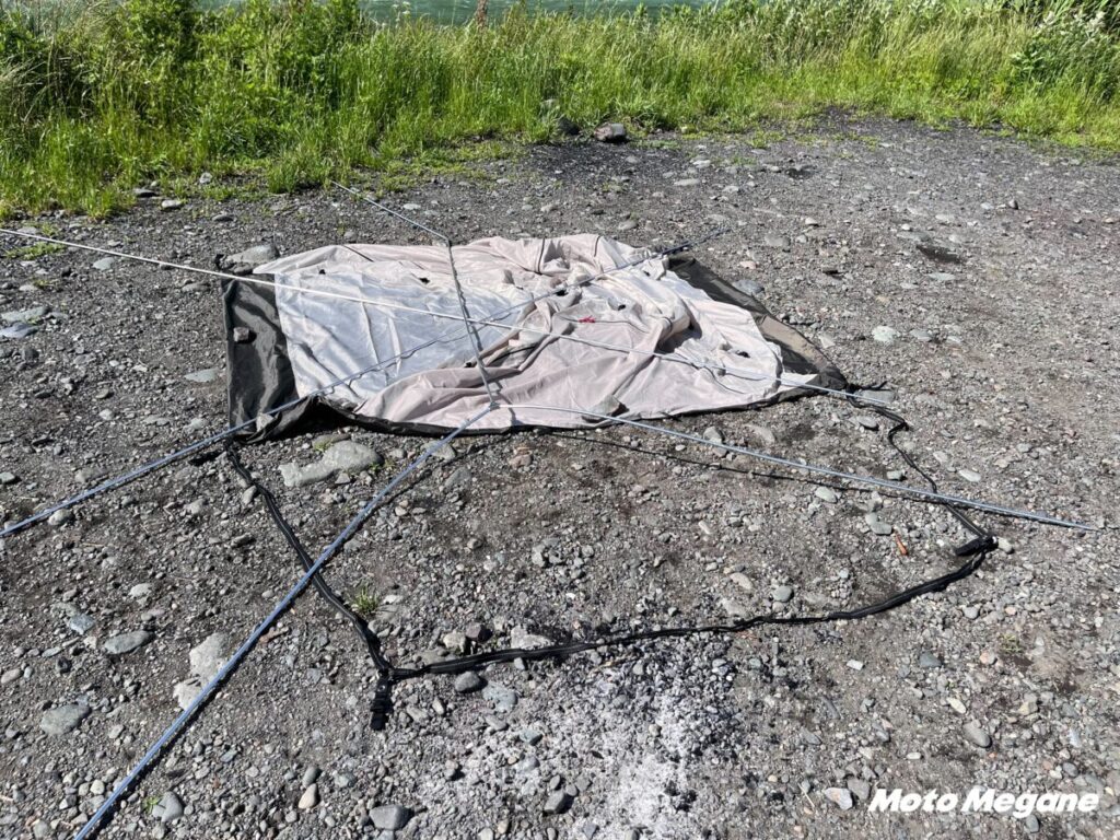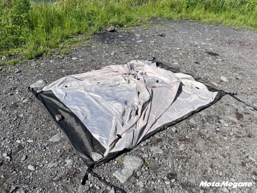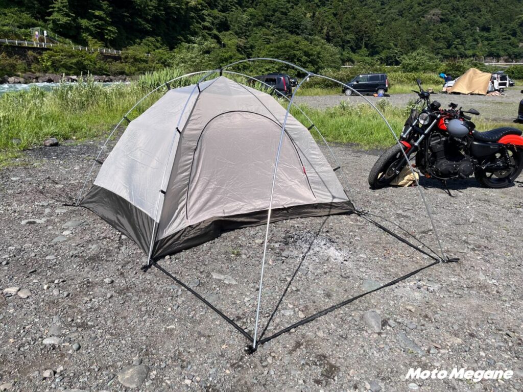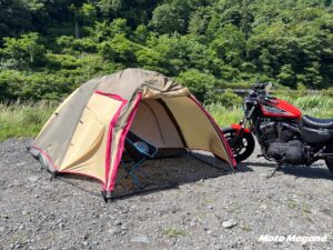 現地到着した段階でバイクで走って疲れているので短時間で設営できる点も大事