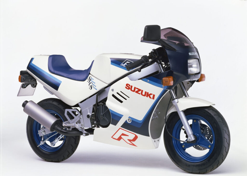 「GAG」は1986年に発売されました。見た目は一世を風靡したGSX-Rそっくり。フルカウルを装備した「なんちゃってレプリカ」です。パワーユニットは、ビジネスバイク「バーディ」のエンジンであり、見た目ほど早くないので「ギャグ」という絶妙な車名が付けられました。さすがはイジられやすいスズキ。自虐が冴えています。