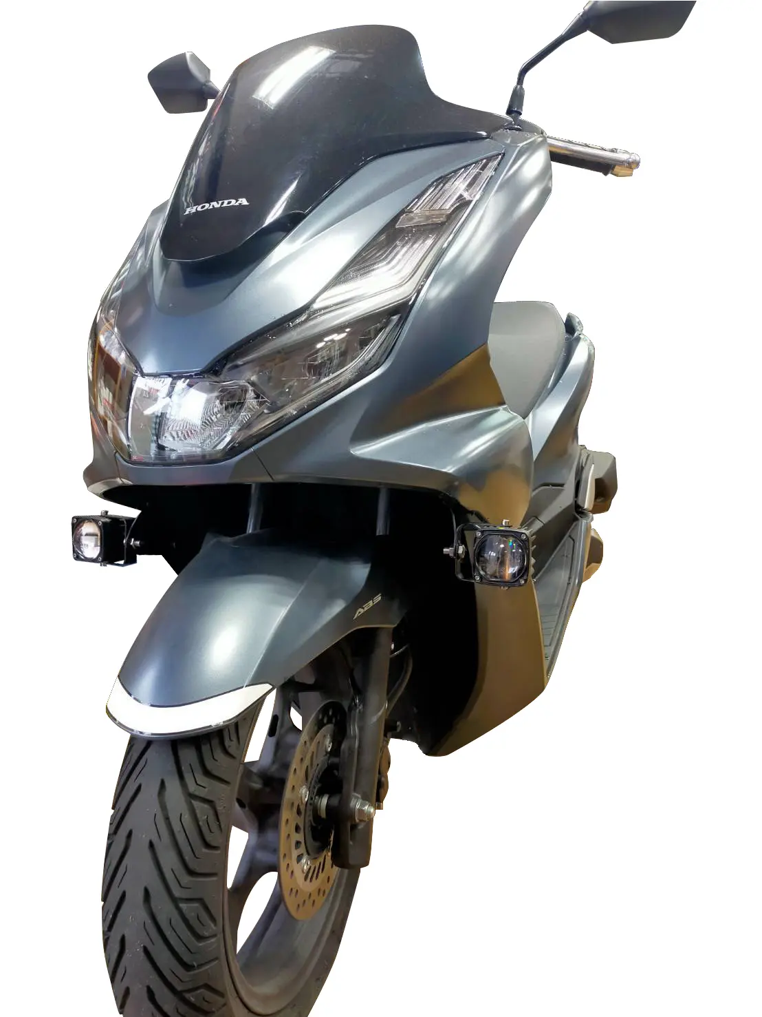 開発の経緯はお取引のある車両販売店様より、2色切替タイプのフォグランプでPCXへ装着出来るものがないかとの問い合わせが数件あり、別の車両販売店で熟練のメカニックの方がオリジナルの取付方法をしていることを聞きつけメカニック目線で取付手順を考えた製品として量産および販売に踏み切りました。