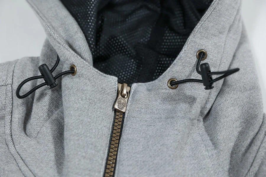 5:パーカーの前立ては上下両開き(屈んだ時詰まらせないよう調整可能)