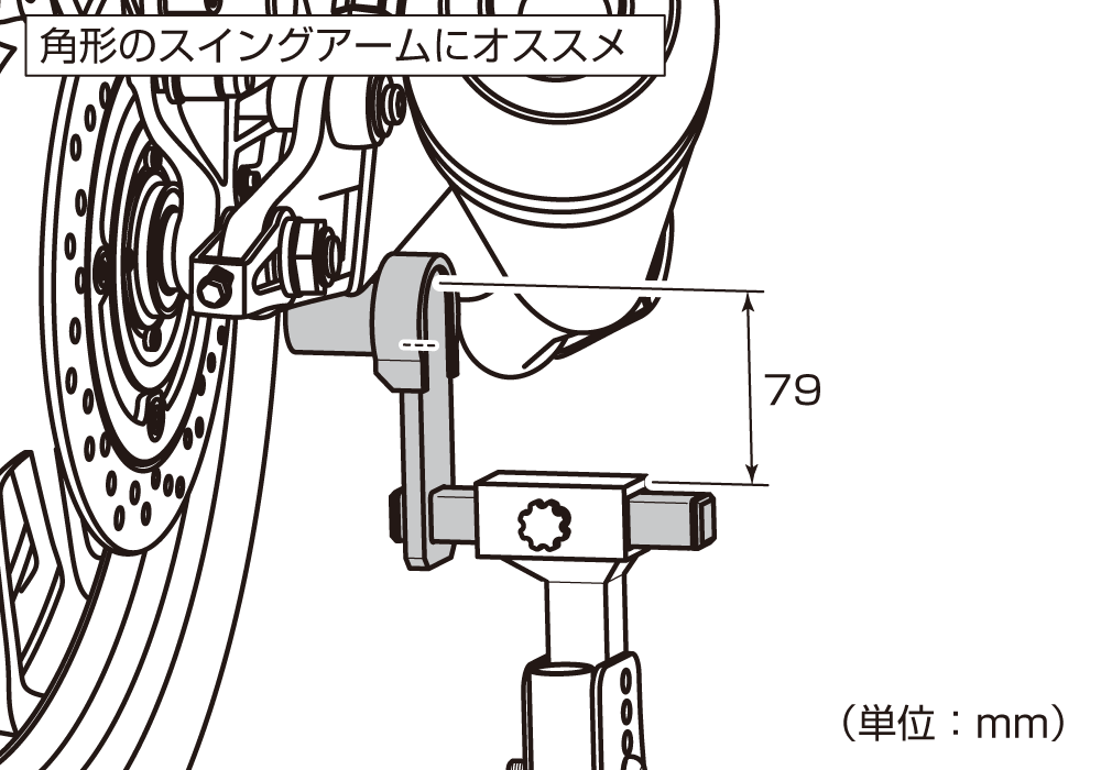 ※リアスタンドアジャスタブルⅠ・Ⅱに使用すると、一番低くても車両が上がりすぎるため、安定性に欠ける恐れがあります。