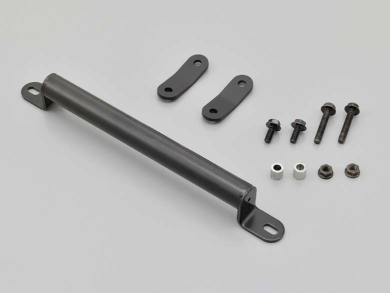 サドルバッグの安定性を高め巻き込みを防ぐサポートバー。専用設計で純正リアキャリア、デイトナ社クラシックキャリア(27523)との相性も抜群。ヘルメットホルダー付きなので、サドルバッグを装着してもヘルメットロックが可能。スッキリしたデザインなのでバッグ非装着時でも、目立たない。固定用ボルトがオフセットしているので社外リアショックとの併用も可能。