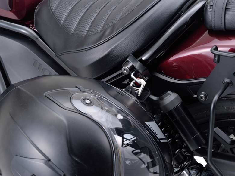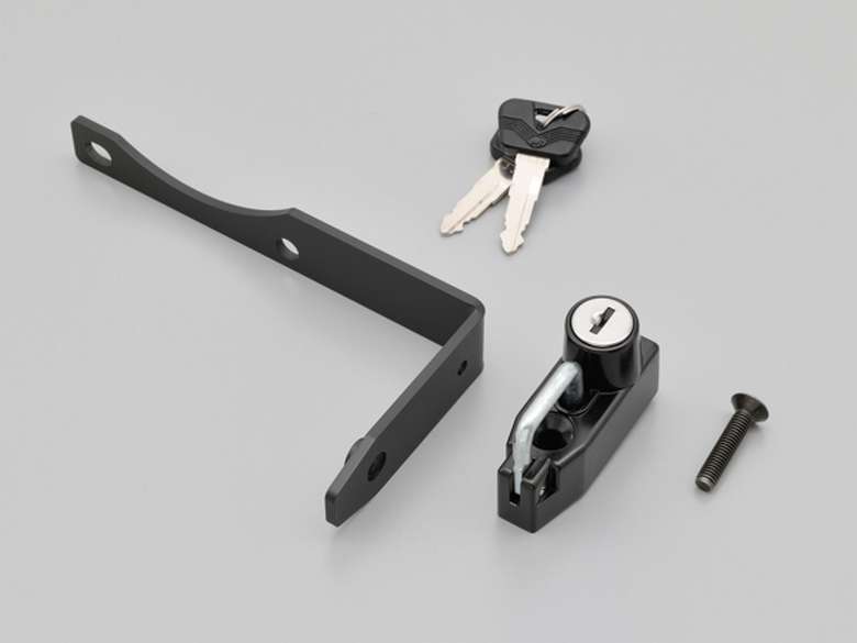 ヘルメットホルダーが純正で装備されていない車両にボルトオンで装着できるヘルメットホルダー。純正ライクな見た目が車両の雰囲気を崩さない。車種専用設計なので、スマートに取り付けが可能。