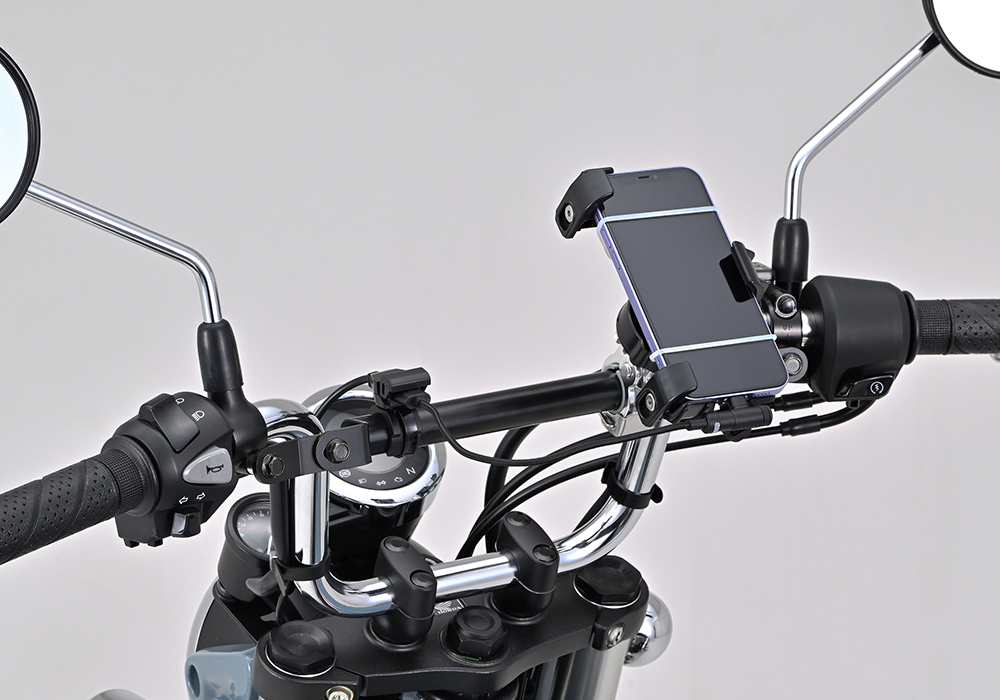 スマートフォンやUSB電源など、電子機器の装着に便利なバーホルダー。ボルトオン装着可能です。