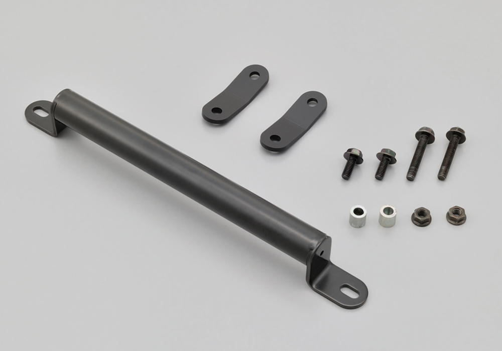 サドルバッグの安定性を高め巻き込みを防ぐサポートバー。ヘルメットホルダー付きなので、サドルバッグを装着してもヘルメットロックが可能です。固定用ボルトがオフセットしているので社外リアショックとの併用も可能です。