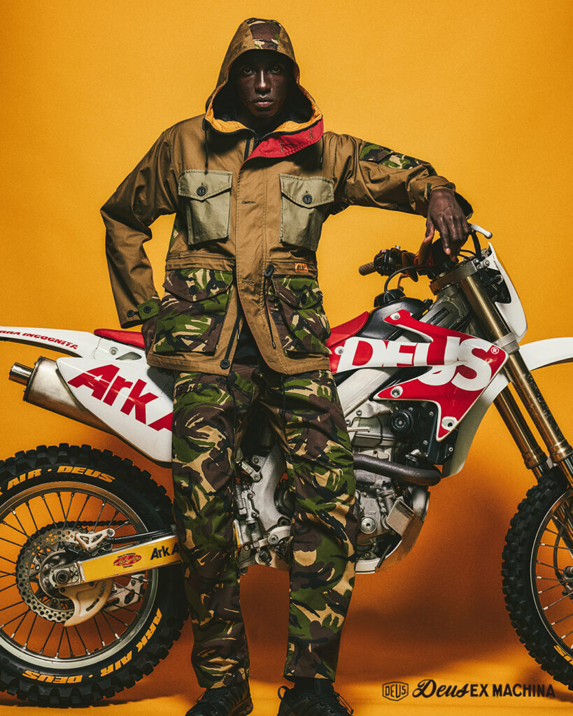 DEUSデザインチームが、モト、ラリー、アドベンチャーのコンセプトをもとに、イギリスのミリタリーウェアーレーベルAirkAirとのカプセルコレクション