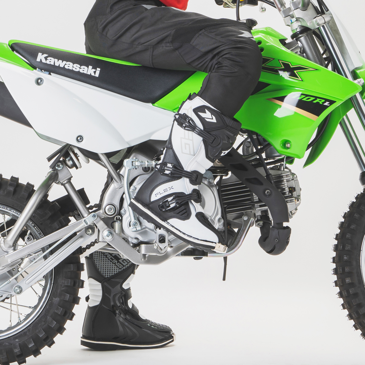 キッズの足に合わせた専用設計で、快適なフィット感を実現。本格的なモトクロス走行に対応。