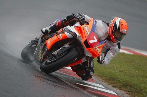 予選も雨が降る中行われました。リアのグリップを引き出すために予選中にもセット変更を試みましたが、改善する事はなくペースを上げる事ができませんでした。さらに予選終盤にヘアピンコーナーでアクセルをあけた瞬間に低速でリアからスリップダウンを喫してしまいました。すぐに起こして再度タイムアタックに臨みて最終ラップにベストタイムを更新して16位で予選を終えましたが、転倒した場所がギリギリ黄旗区間だったことでペナルティを受け3グリッドの降格処分となり19番グリッドとなりました。