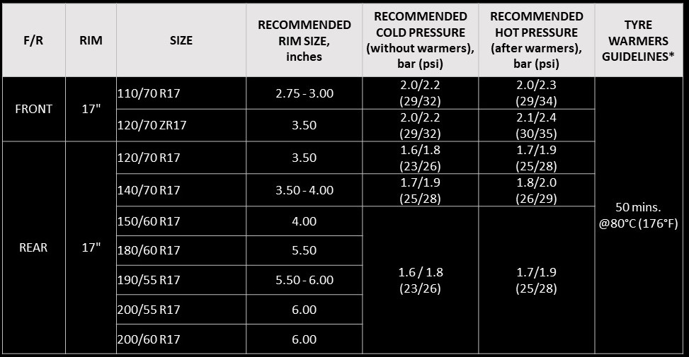 レーストラック専用製品である DIABLO™ SUPERCORSA SC V4 は、サイズに応じてサーキット用の空気圧で使用できるように設計されています。