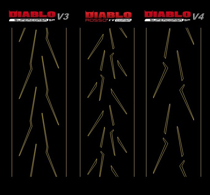 DIABLO™ SUPERCORSA V3 と比較して、DIABLO™ SUPERCORSA V4 は、新しいトレッドパターン、新しいコンパウンドとコンパウンドレイアウト、新しい構造、新しいプロファイルを備えています。