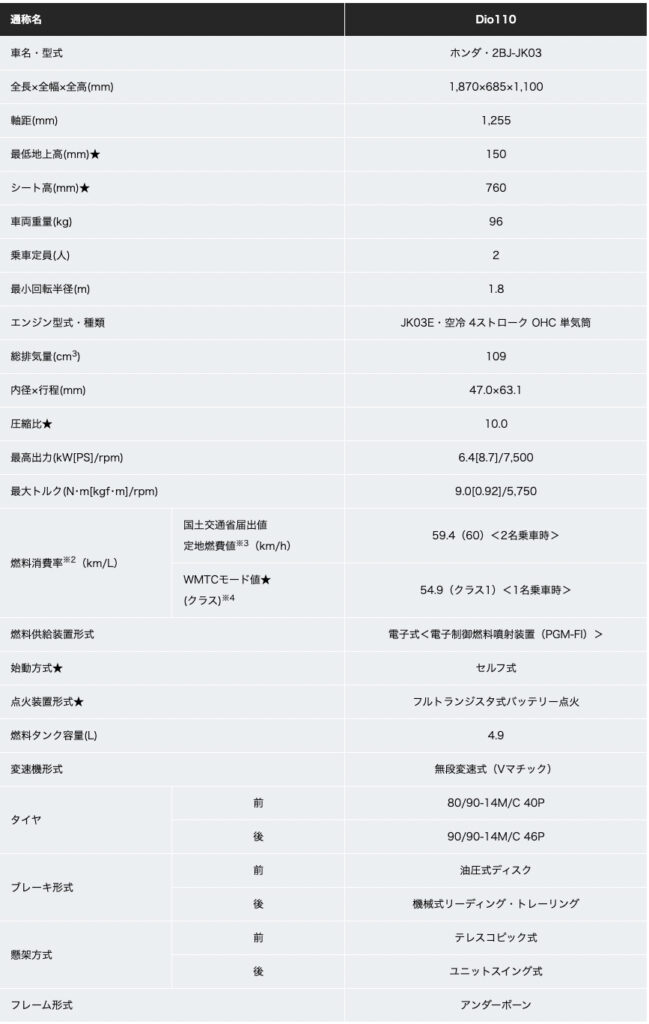 原付二種スクーター「Dio110」のカラーバリエーションを変更し発売