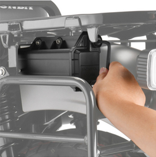 吸気ダクト側はサイドバッグを取り付けた際でもツールボックスへのアクセスが可能。