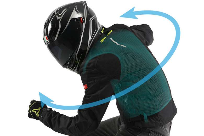 夏に必須のバイク用のメッシュジャケット。走行風で身体に押し付けられると目詰まりした状態になり、風が通りにくくなってしまう。空冷用インナーメッシュベストは風の通り道を確保し、走行風による冷却効果を高める文字通りの「空冷」ベストだ。