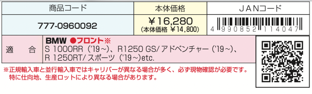 適合:BMW S1000RR(19〜)、R1250GS/ドベンチャー(19〜)、R1250RT/スポーツ(19〜)etc