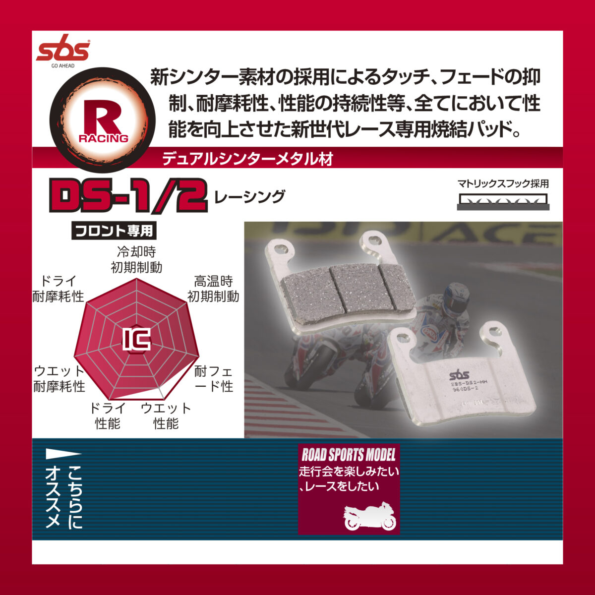 DS-1 と DS-2 のパッドフィーリングは異なりますがキャリパー左右で異なる DS-1/DS-2 のパッドを装着することが可能です。サーキットレイアウトや、コー スコンディションによってブレーキパッドもセッティング出来るようになりました。