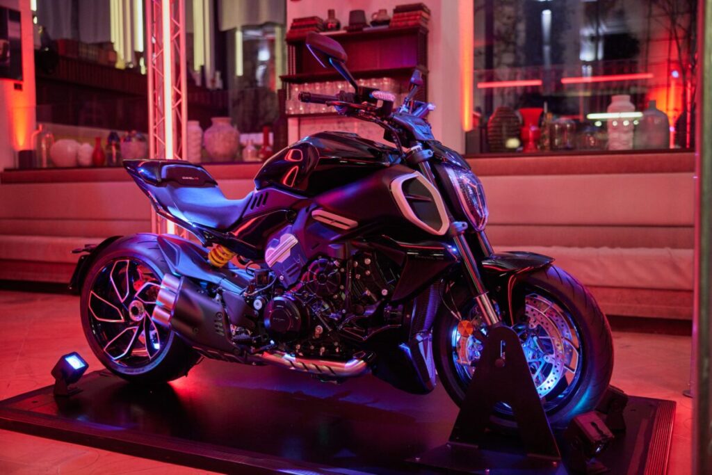 - 力強いボディラインと唯一無二のデザイン、印象的なライティング・システム、4本出しのサイレンサーを備えたディアベルV4は、その大胆なスタイルにより、あらゆる場所で人々の視線を集めた