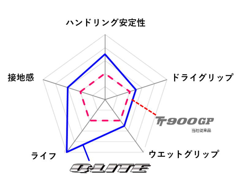 従来品からベストラップを0.8%、5ラップ平均で1ラップあたり1.5%短縮し、ライフ性能は60%向上させている。