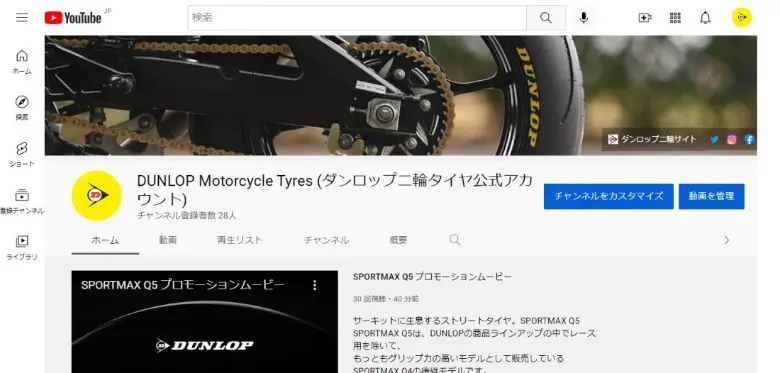 ダンロップ二輪タイヤ YOUTUBEチャンネル