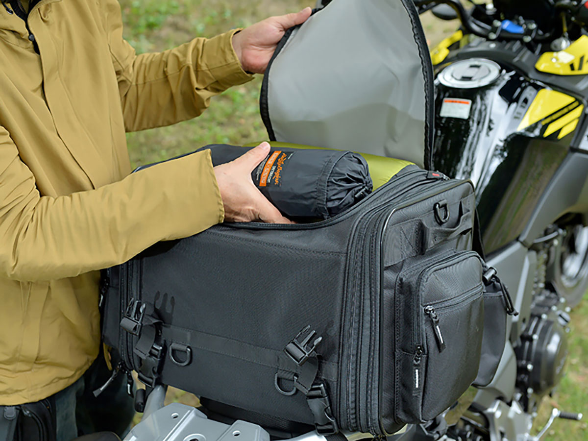 ツーリング時、荷物を入れたリュックやショルダーバッグを長時間身に着けているのは疲れますよね。またツーリング先でお土産を買って荷物が増えるなんてこともあるかもしれません。そんな時に効果を発揮するのが車載可能なツーリングバッグです。