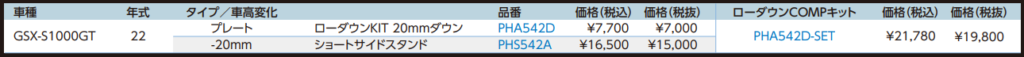 ローダウンキット 20mm に SUZUKI GSX-S1000GT 22用の適合を追加!