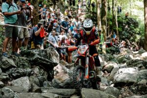 ※ガレ場や木の根の急斜面など、通常のエンデューロ競技にはない過酷な難所をコースに設定し、スピードだけでなくそれらの難所を走破する技術をも要求するオフロード競技。