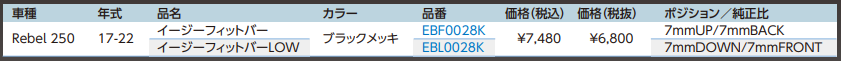 大人気のRebel250用イージーフィットバーも好評発売中!