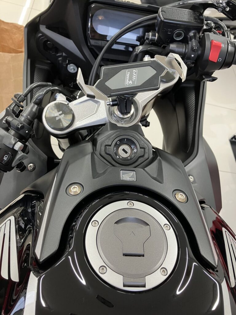 ライディングの姿勢に合った位置でのスマホ画面の位置調整!セキュリティ機能も兼ね備えた優れもの!
