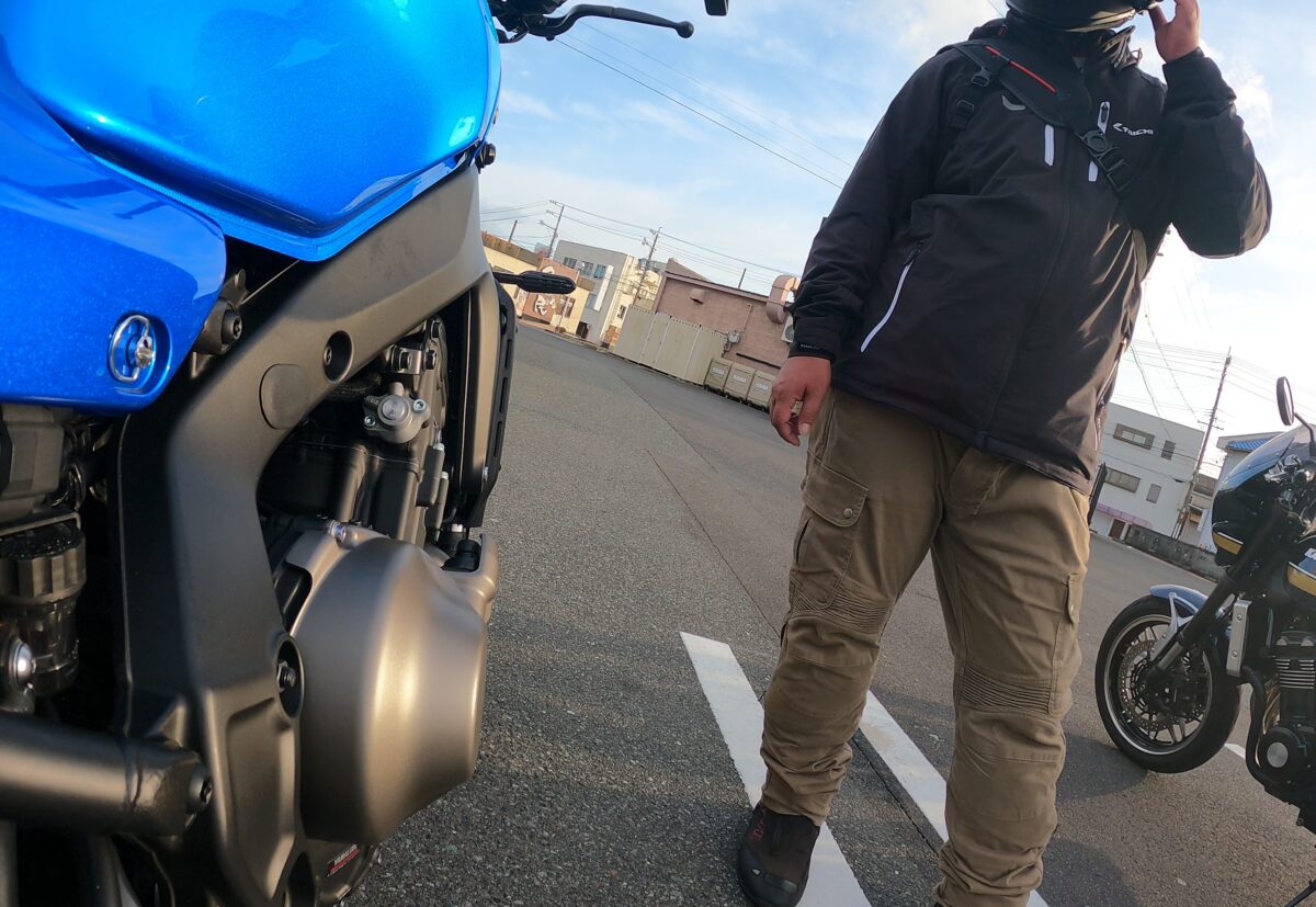 ライディングウェア(ジャケット、パンツ、シューズ、グローブ等)は運転中のライダーに馴染むよう裁断、縫製されています。またライディングウェアは用途や季節に合わせ防風性能防寒性能通気性能など備えており、選び方はライダーの数だけあると思います。