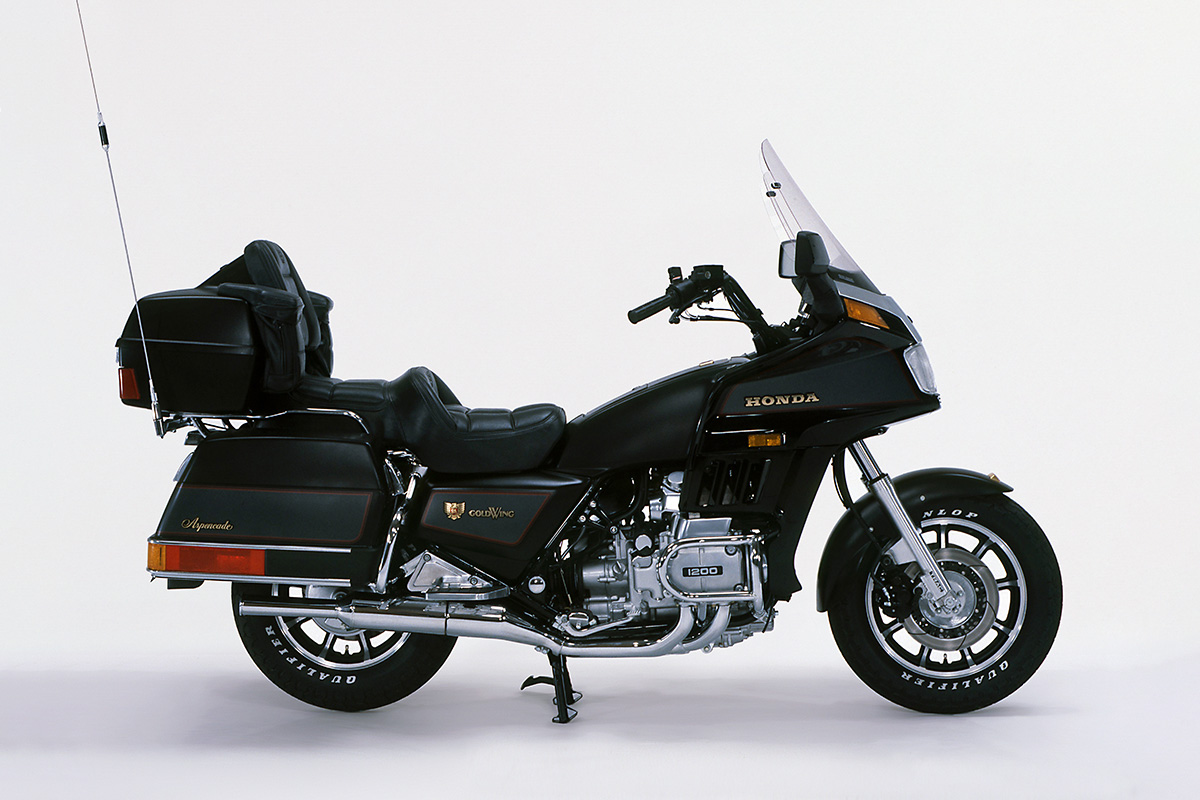 初代のゴールドウイング「 GL1000」は、1975年に発売。なんと水冷4ストロークOHC水平対向4気筒を搭載するスーパースポーツモデルでした。1980年にGL1100 Gold Wingにモデルチェンジ。追加発売されたGL1100 Gold Wing Interstateには、音響機器が装着できるオプションが用意されるなど、ツアラー色が強められました。