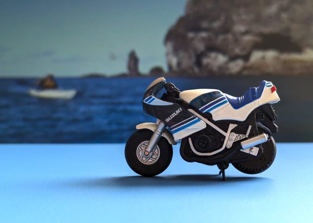 栄えある最初の一台は「スズキ・GSX-750Sカタナ」です。大方の人は「カタナと言えばGSX-1100Sだろ?」と思うでしょう。チョロバイ初期モデルが発売されたのは1984年。まだ逆輸入は一般的ではありませんでした。ドメスティックモデルであるGSX-750Sカタナが製品化されたのは必然と言えます。