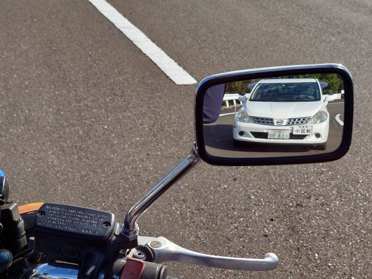 運転中、後方の様子はルームミラーやドアミラー、またバイクであれば左右のサイドミラーにより大半の情報を認知し、判断することになります。これらにより後方の状況を見た場合、運転者が感じている距離感覚や速度感覚は実際と比べて正確ではないかもしれません。