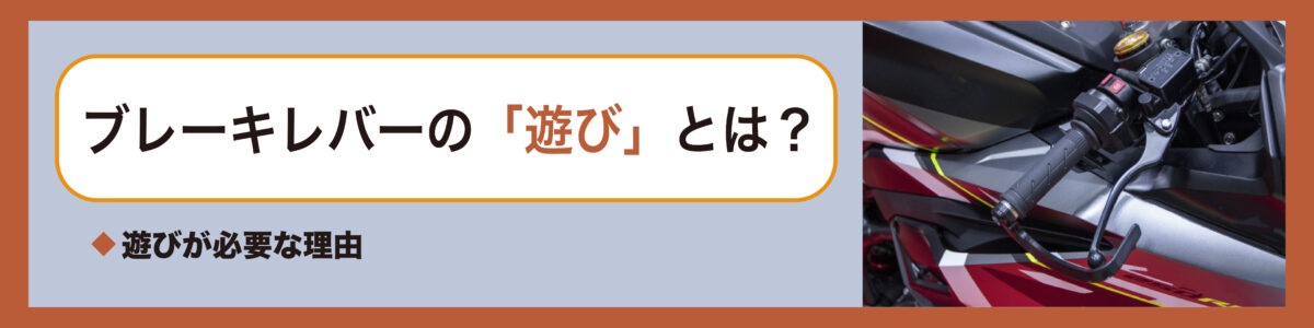 ブレーキはバイクの制動や停止にかかわる重要な装備ですが、ブレーキをかけるためのブレーキレバーには適切な「遊び」が必要です。この「遊び」が適切でないと、ブレーキの効きが悪くなったり、逆に急に効きすぎたりして、思わぬ危険が生じることもあります。