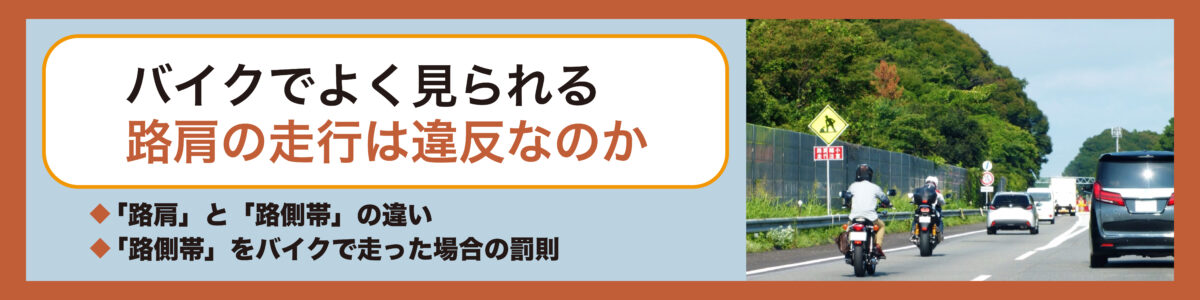 高速道路と一般道におけるバイクの路肩走行の違反行為・路肩と路側帯との違いについて、整理して解説しました。